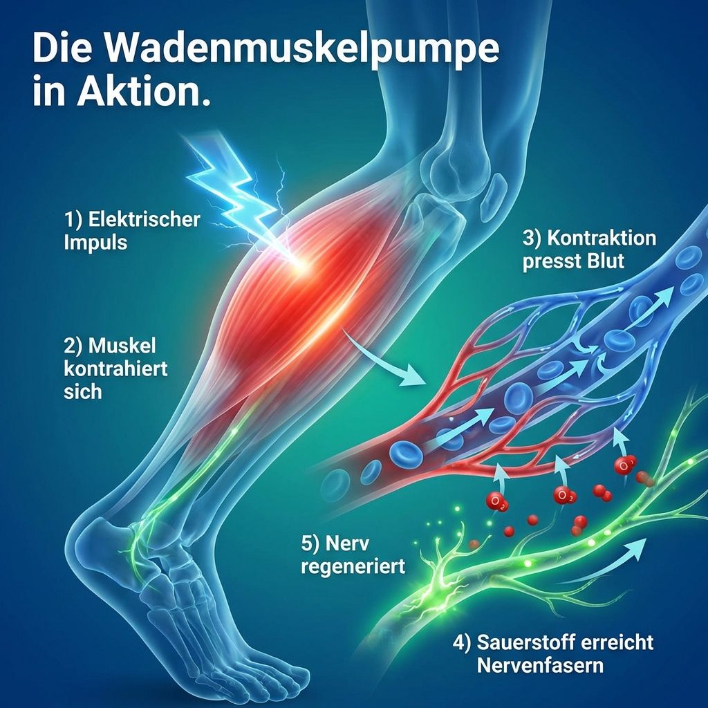 Was passiert: Die NMES-Impulse beginnen, Ihre Wadenmuskulatur zu aktivieren.